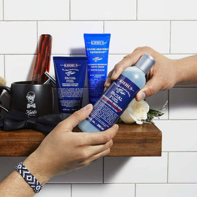 A perfect shave is all in the preparation. The shower is a great place to start, because steam helps open pores for closer results. Begin by applying a simple cleanser, this softens the hair, making it easier to cut. Our best cleanser for your face is the Kiehl’s Facial Fuel Energizing Face Wash contains caffeine and Vitamin E and refreshes skin for a healthier looking appearance. Follow up with the Facial Fuel Energizing Scrub to remove oil, dirt, and dead skin cells contributing to ‘razor drag’ and increasing the chance of discomfort when shaving.